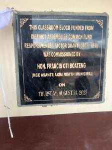 On Friday, 24th August 2023,  the Municipal Chief Executive of Asante Akim North Municipal Assembly Hon. Francis Oti Boateng commissioned a 3 unit classroom block at Abrewapon JHS, a community in the Asante Akim North Municipal of the Ashanti Region of Ghana.