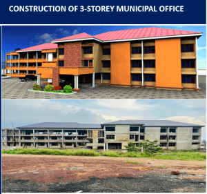 AllGallery Item Municipal Assembly Building Construction of the court building. Construction of Magistrate Residence. Construction of Dinning hall at Owerriman shs Dormitory construction at Collins SHS.